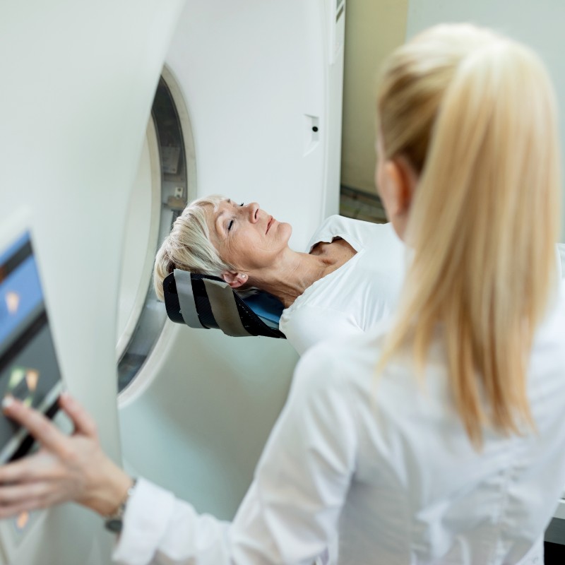 Die Computertomographie erzeugt mit Röntgenstrahlen hochauflösende Schnittbilder des Körpers. Sie liefert detailgenaue Informationen über Knochen, Lunge, Bauchorgane und Gefäße – und das in sehr kurzer Untersuchungszeit.
